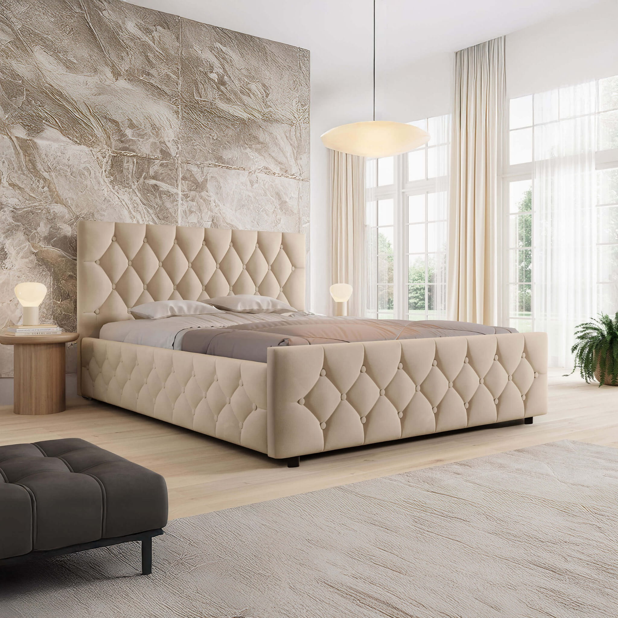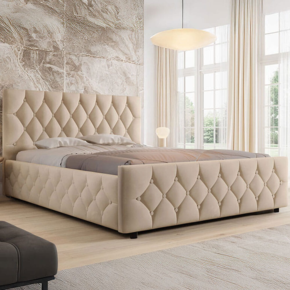 Łóżko tapicerowane z pojemnikiem SFG0172 | 140x200 | Welur | Beżowy #3