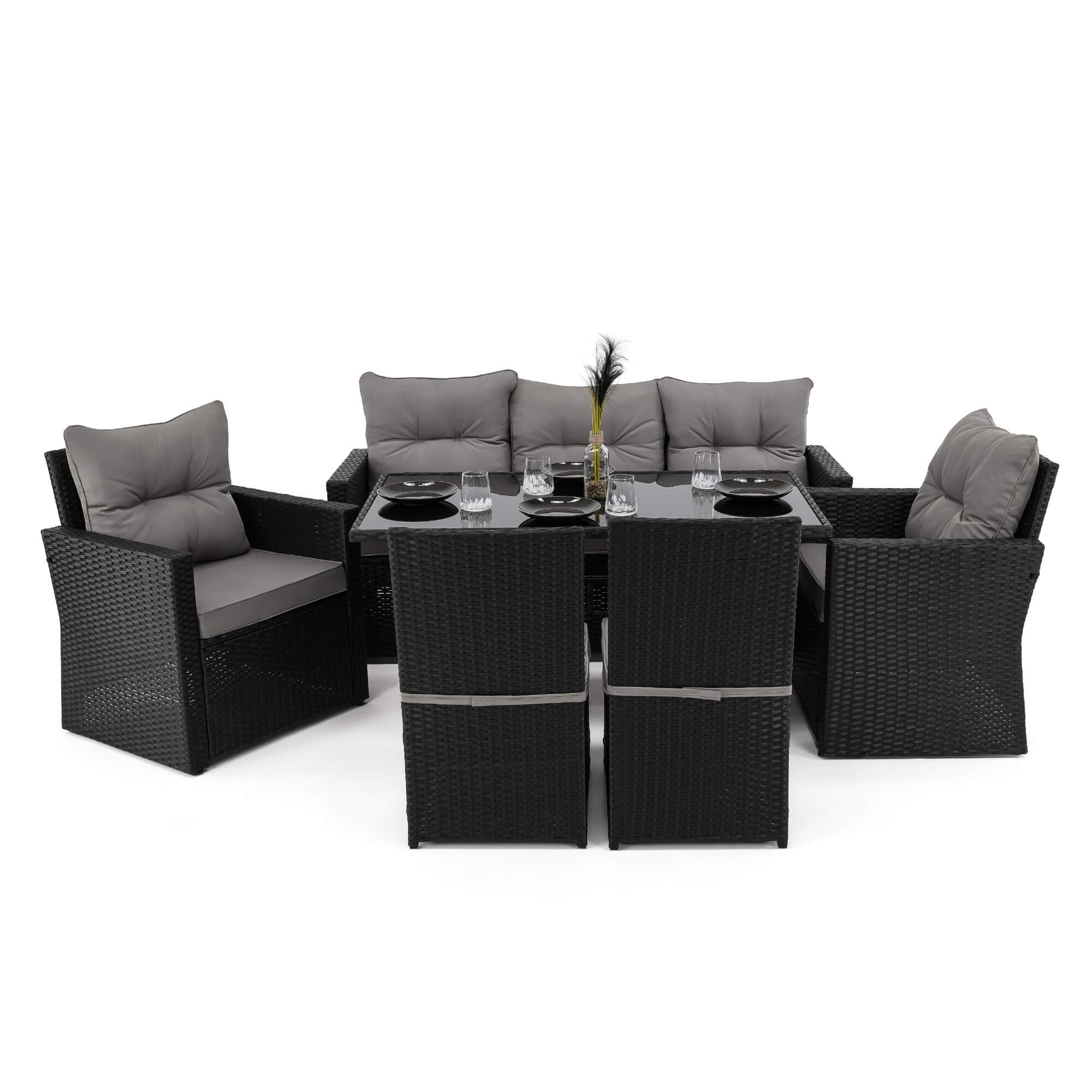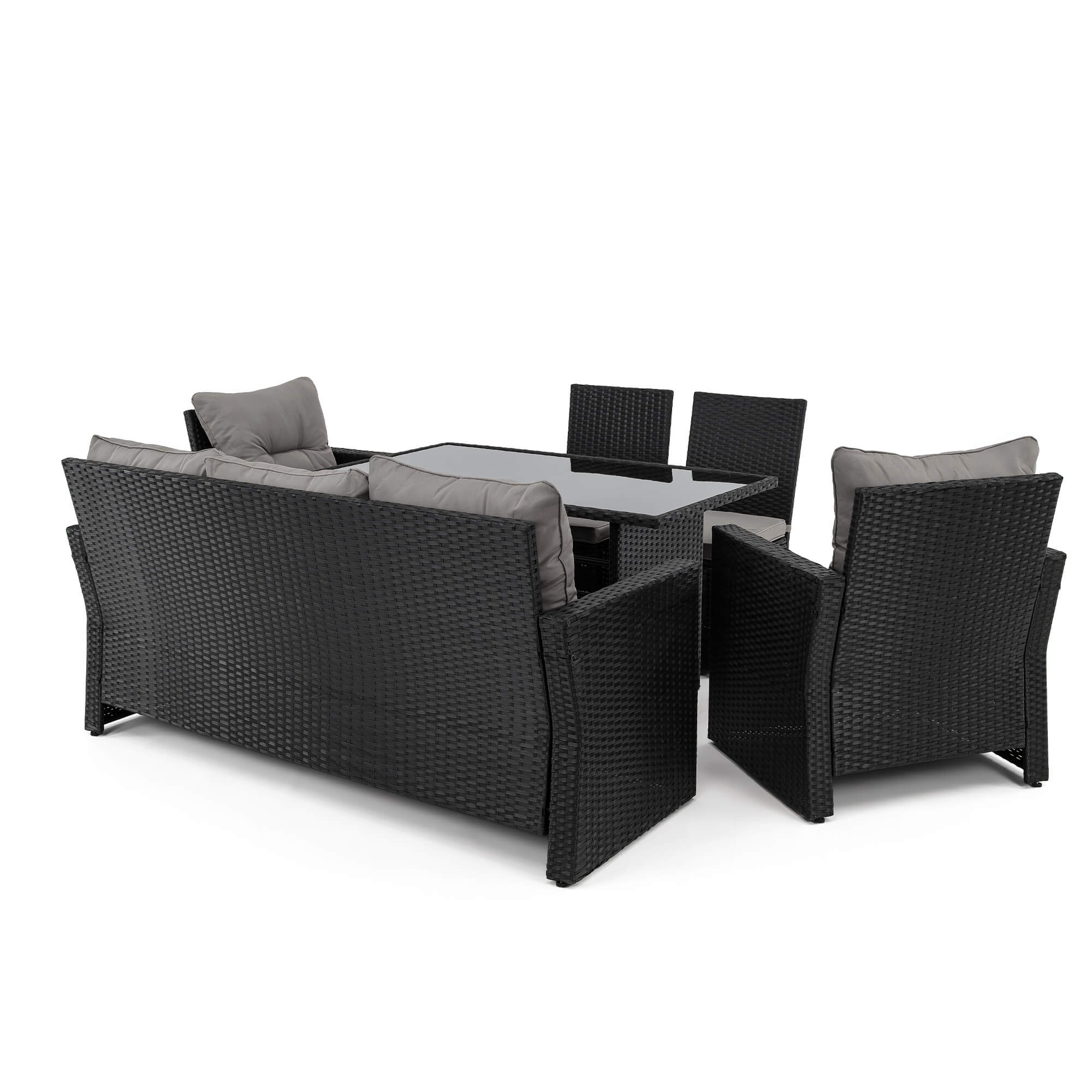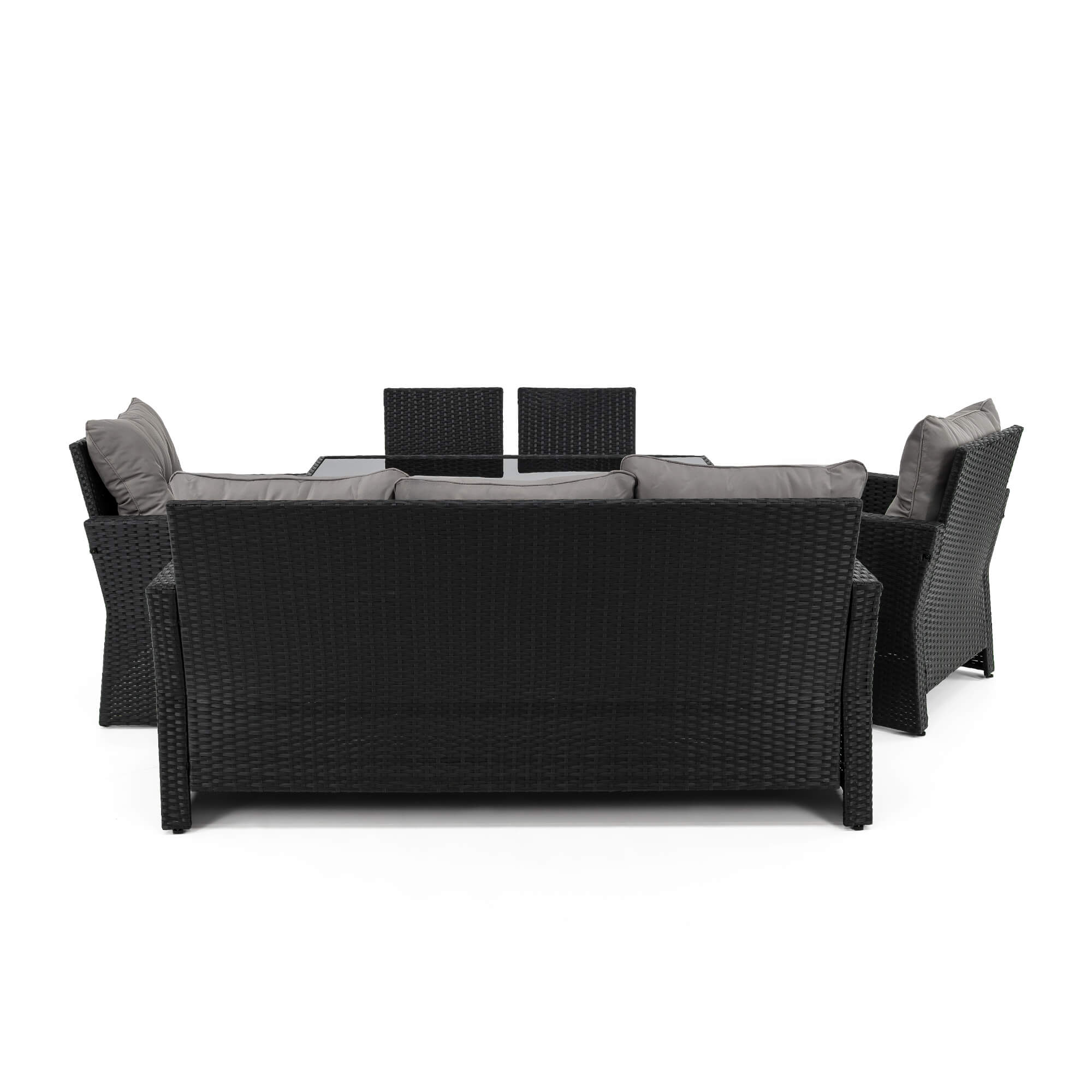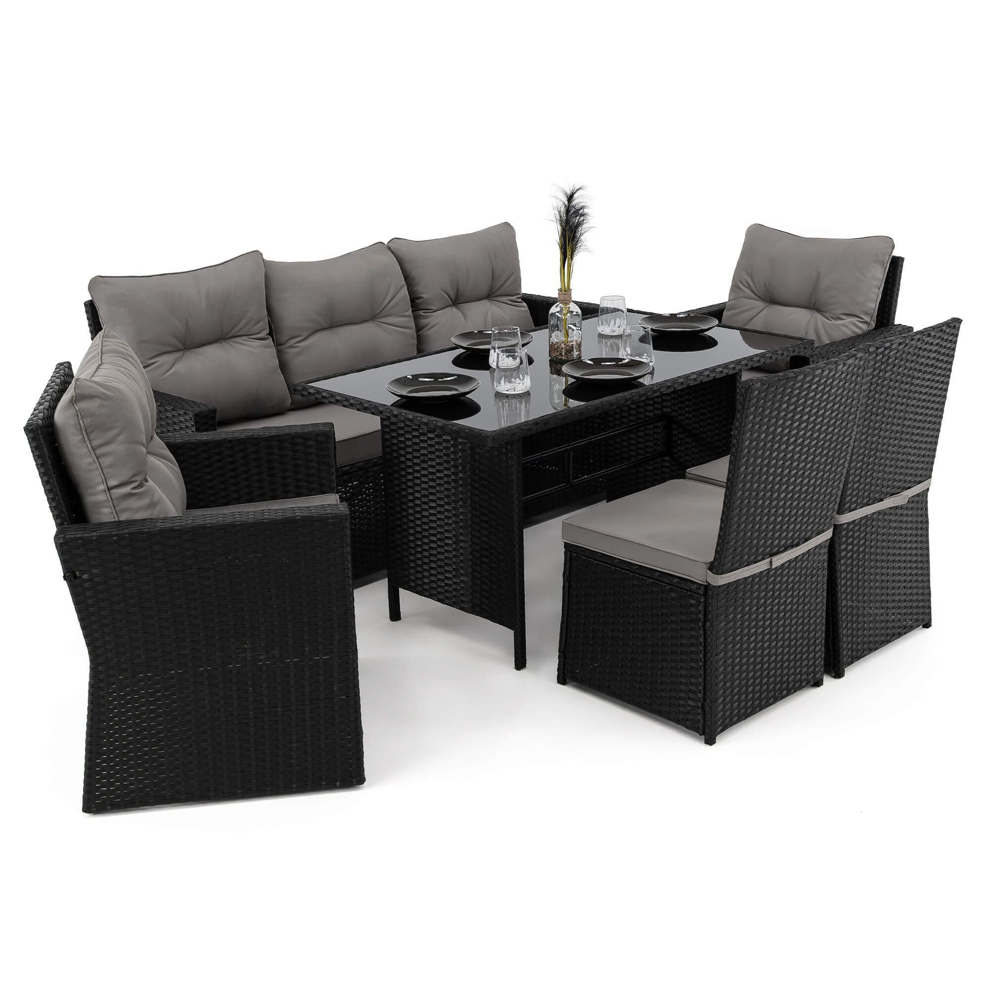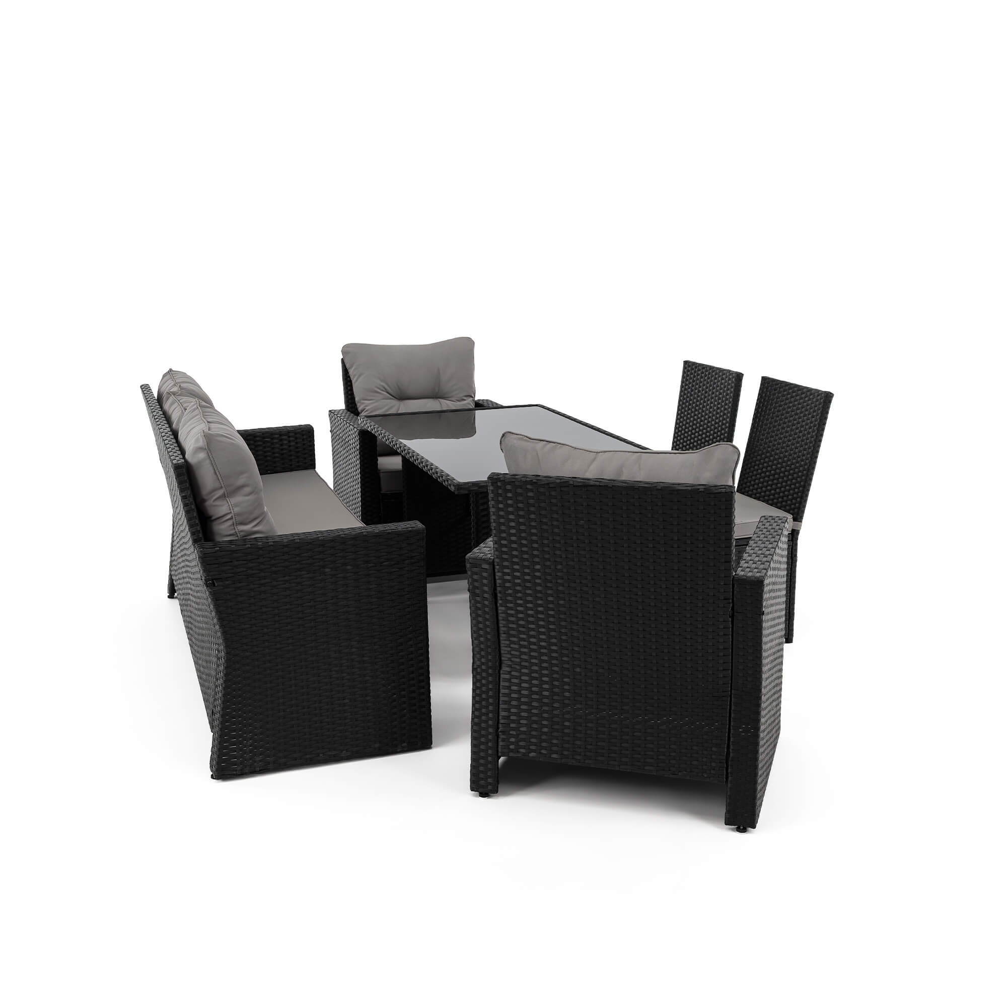 Zestaw mebli ogrodowych MONAKO XL czarny, technorattan - poduszki szare