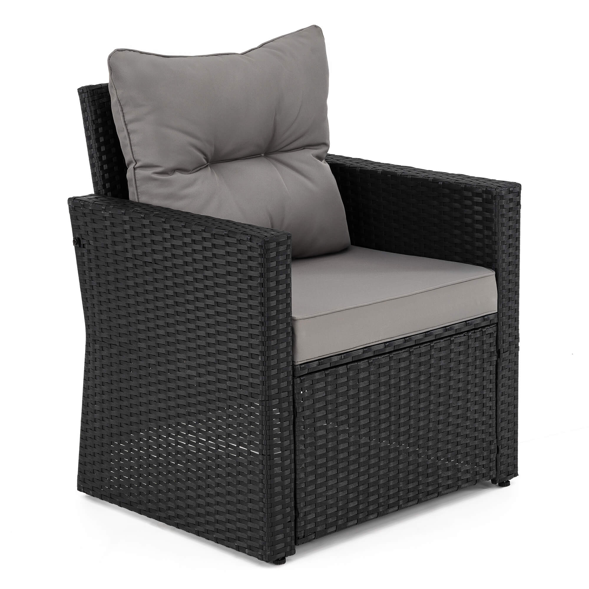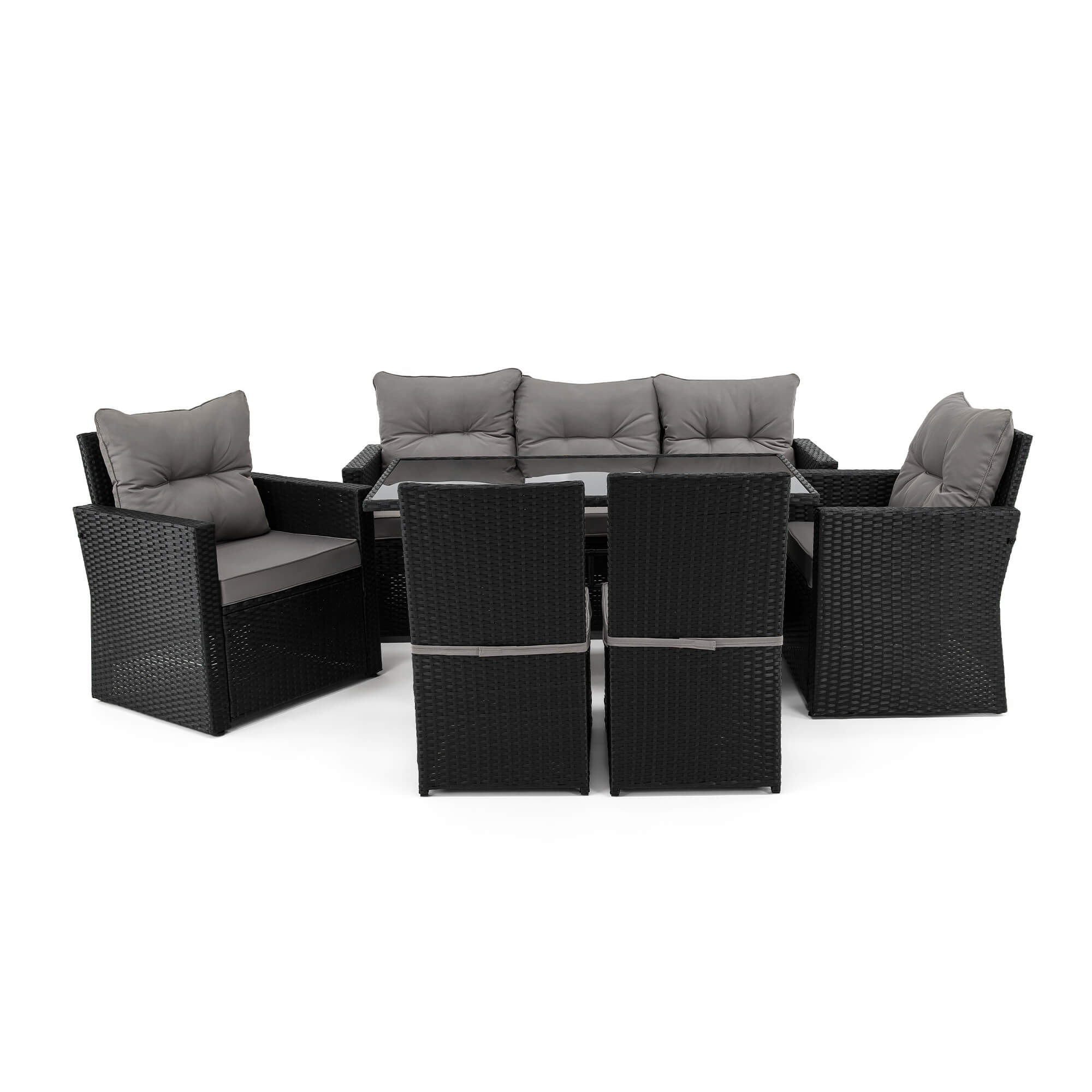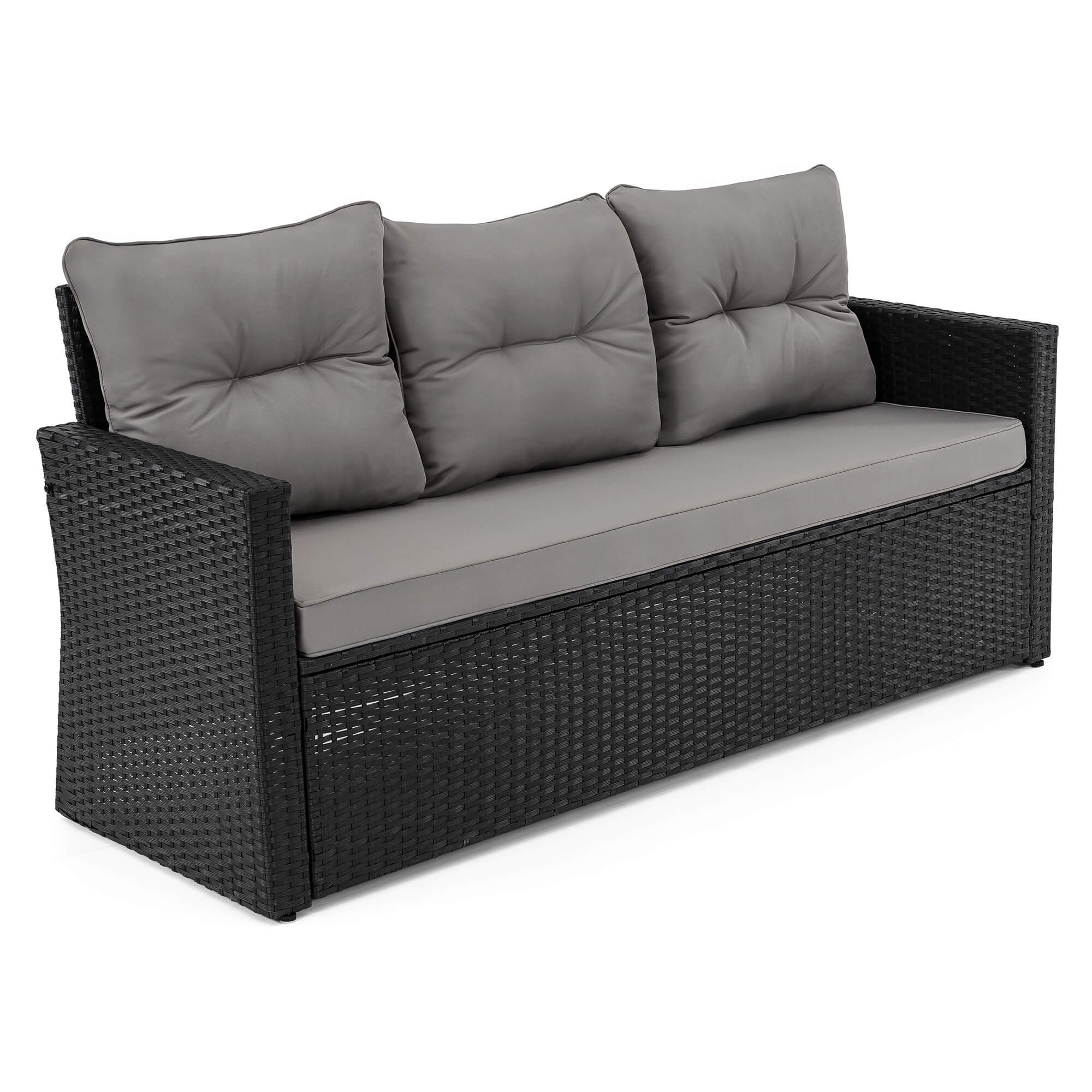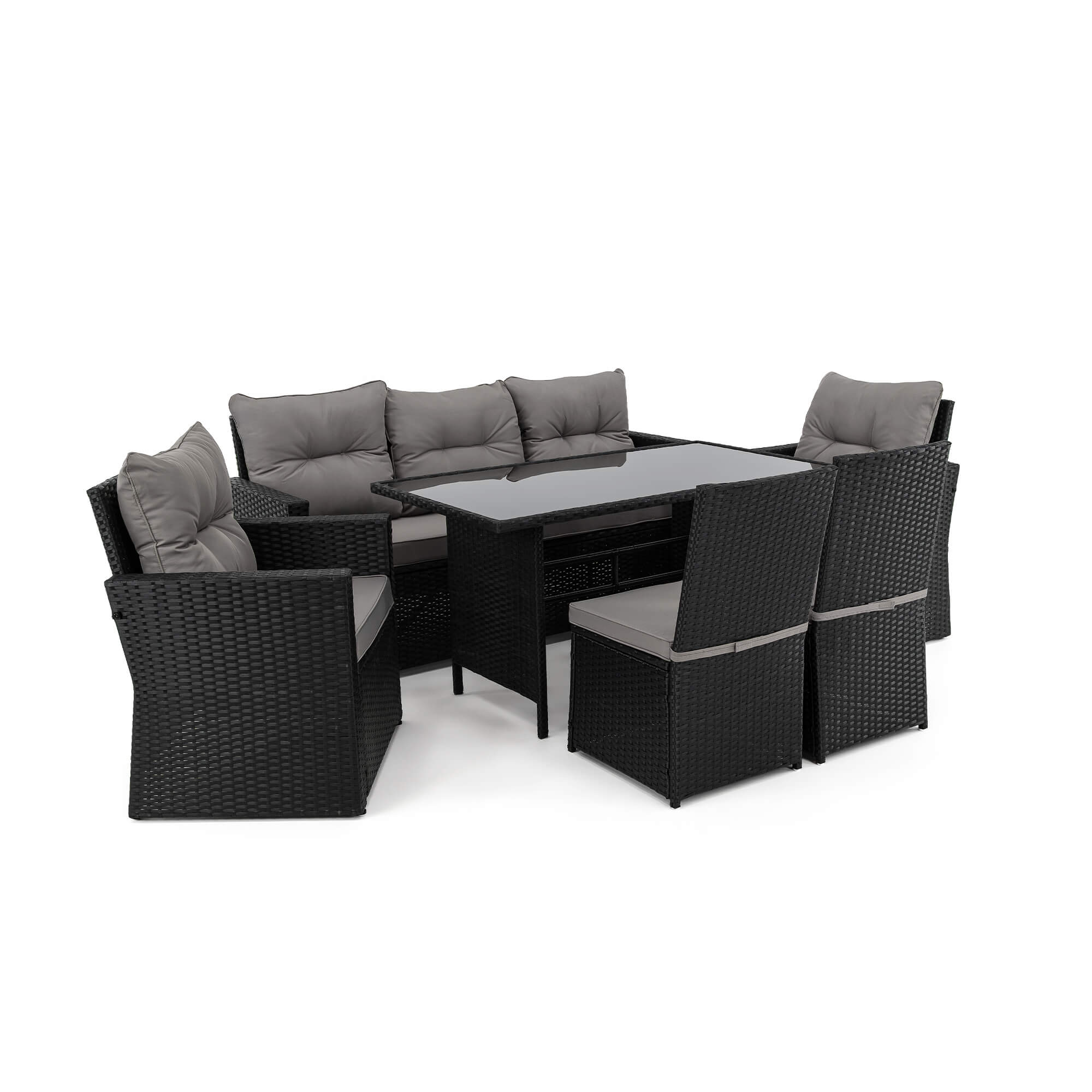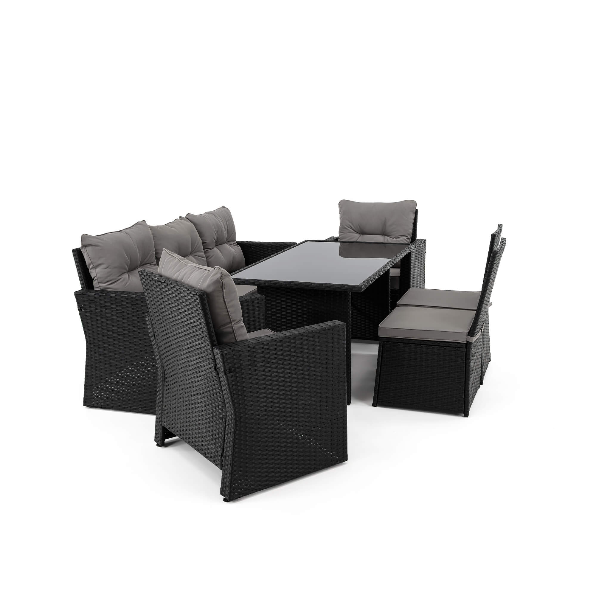 Zestaw mebli ogrodowych MONAKO XL czarny, technorattan - poduszki szare