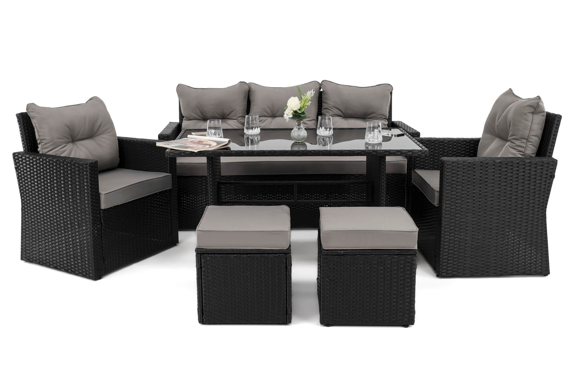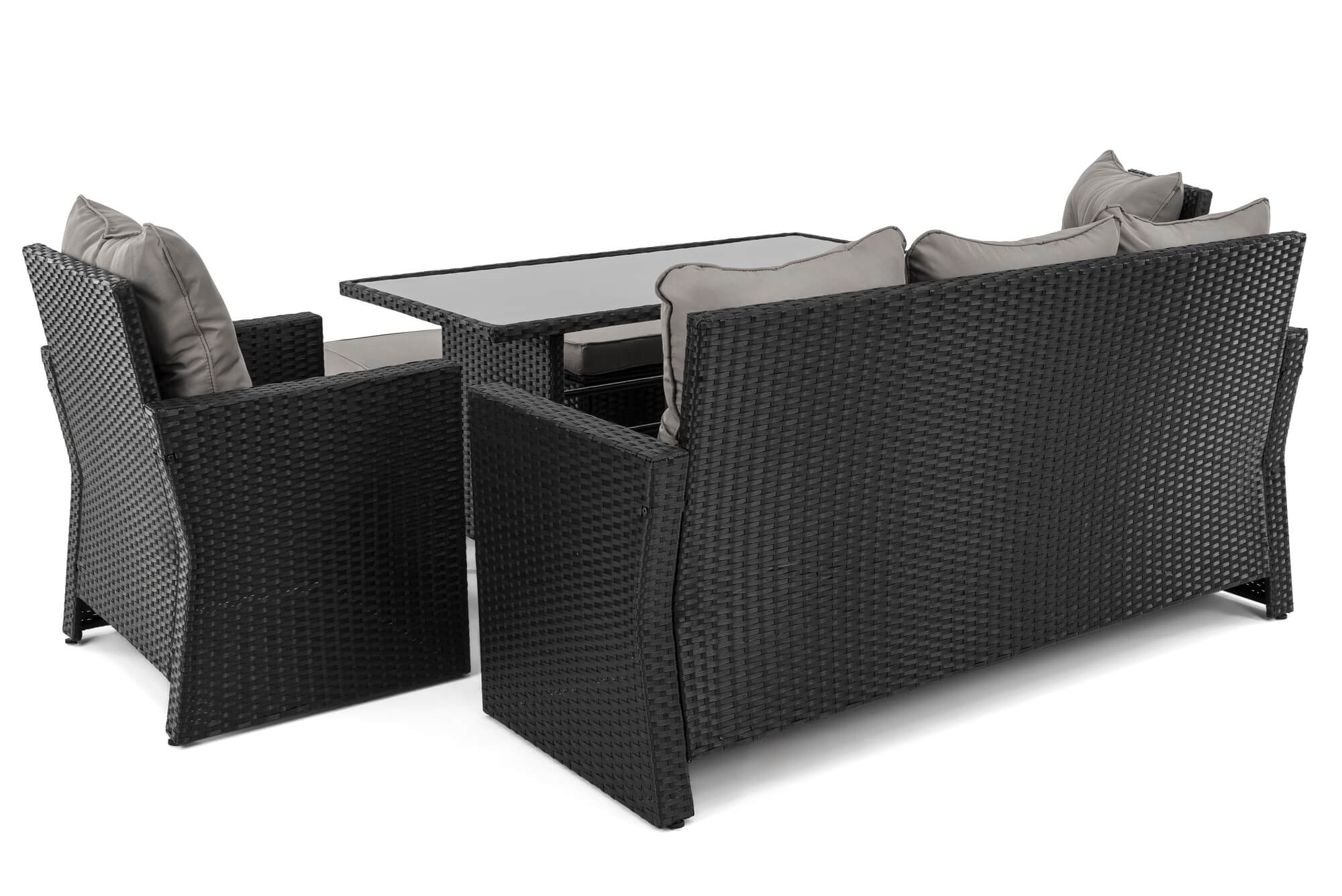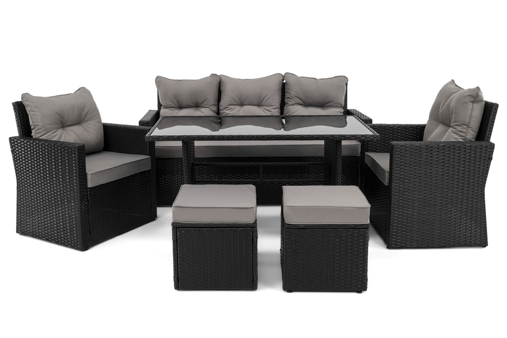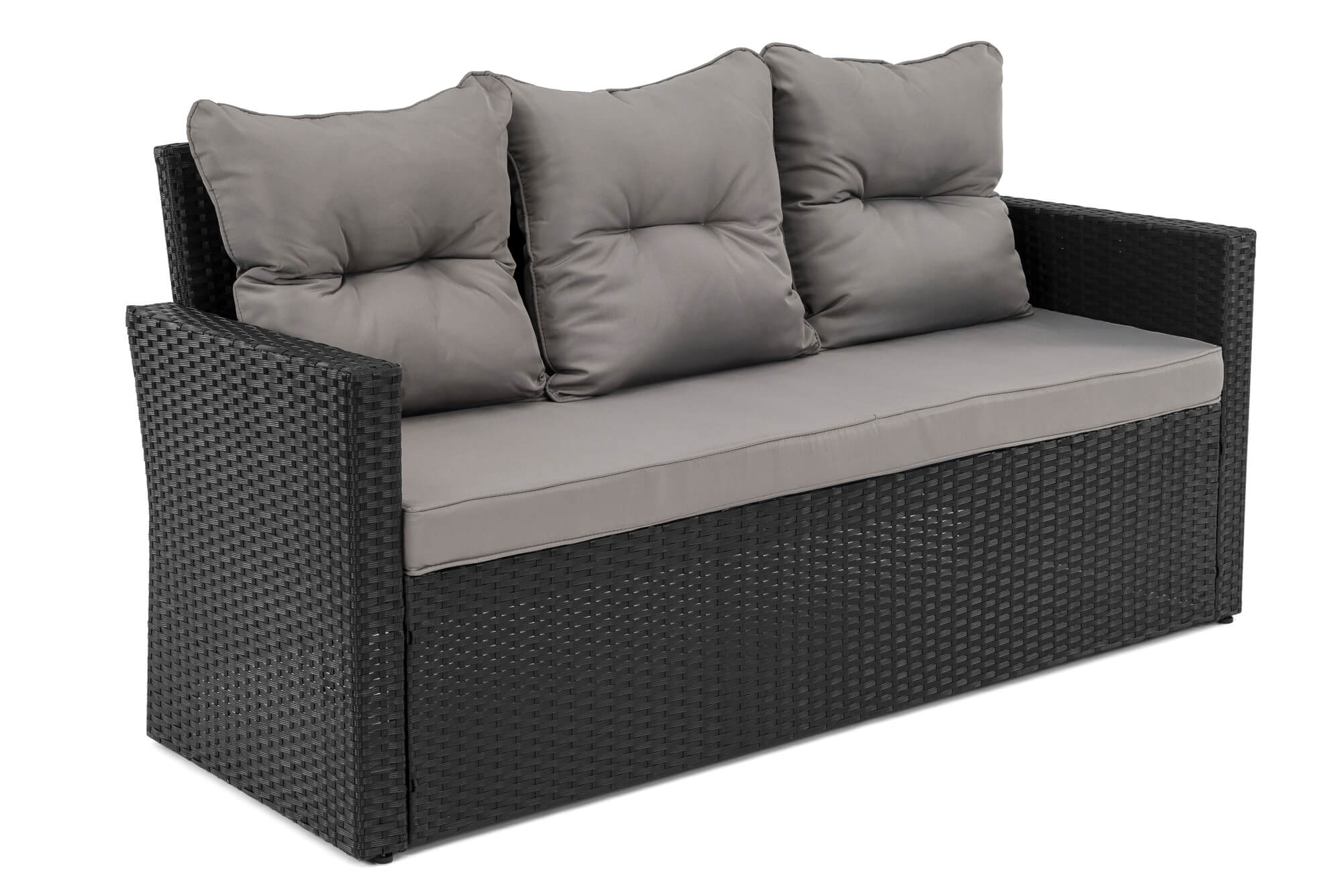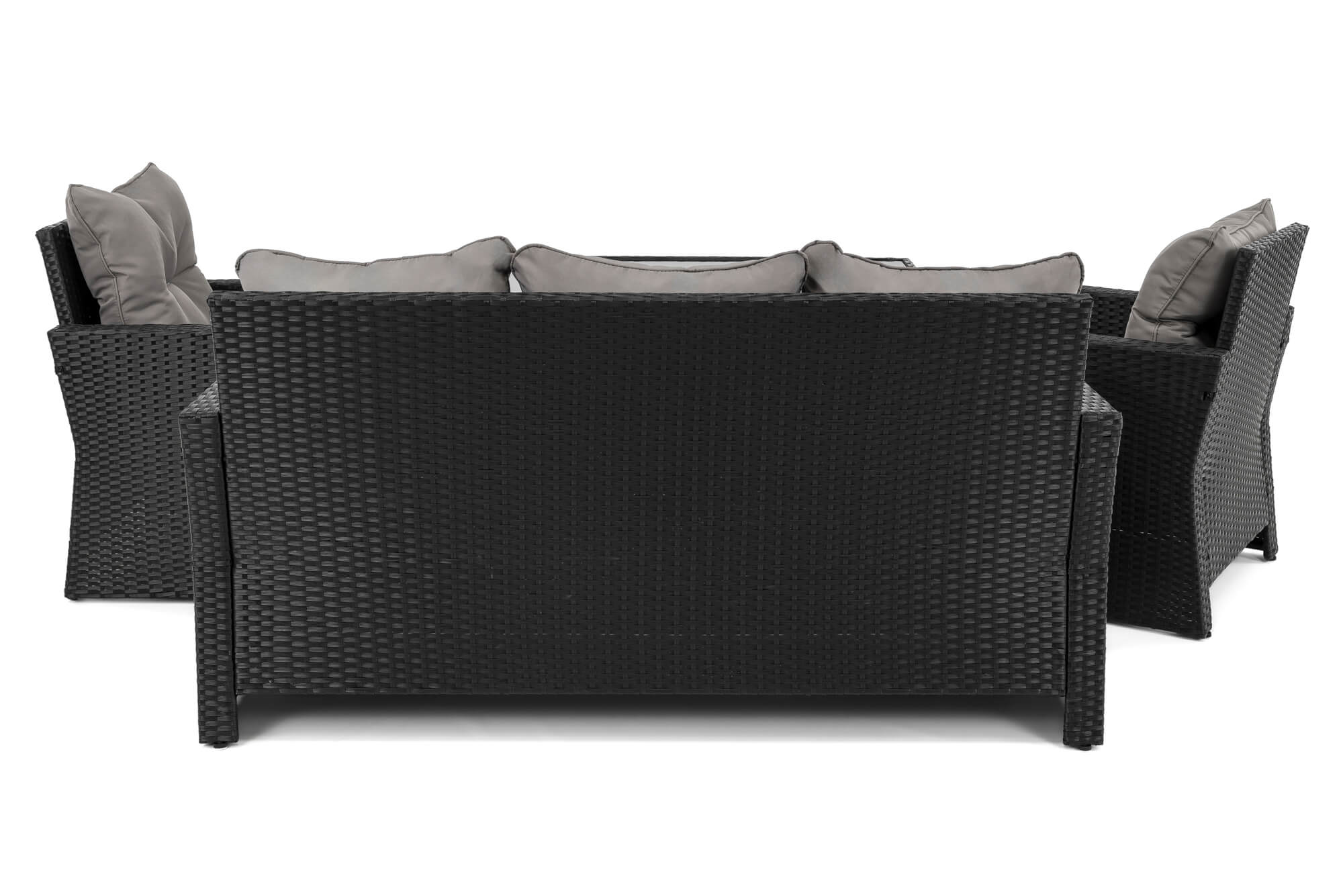 Zestaw mebli ogrodowych MONAKO czarny, technorattan - poduszki szare