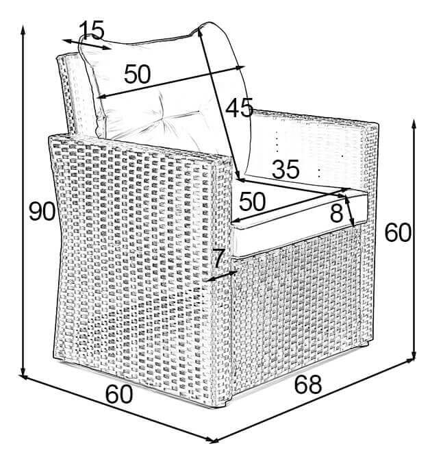 - Fotel: 2 szt ( 82 x 68 x 60 cm )