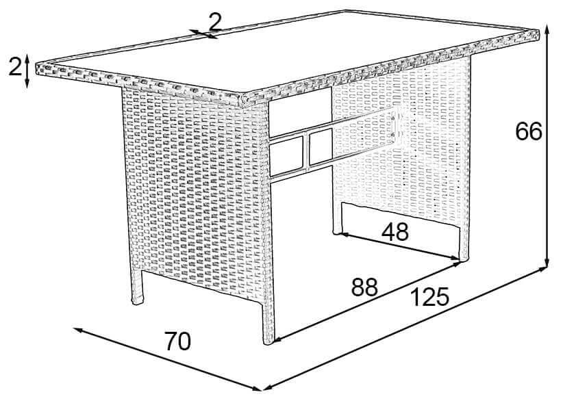 - Stół 1 szt ( 65 x 125 x 70 cm )